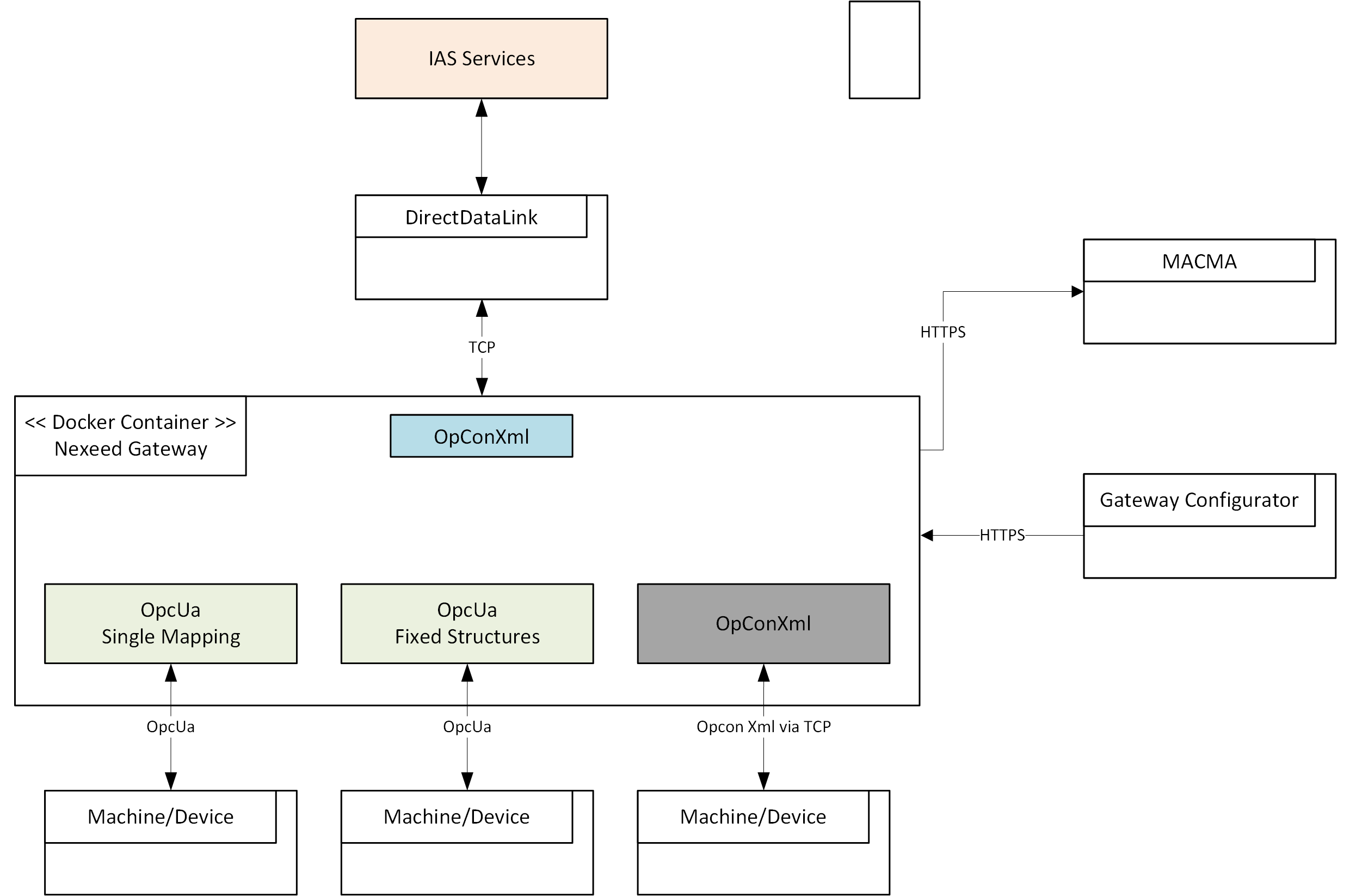 The DirectDataLink module acts as a special gateway because it supports the OpConXml, Open Production Protocol (OPP) and Production Performance Management Protocol (PPMP) protocols. These protocols are used in many MES operational environments. |
